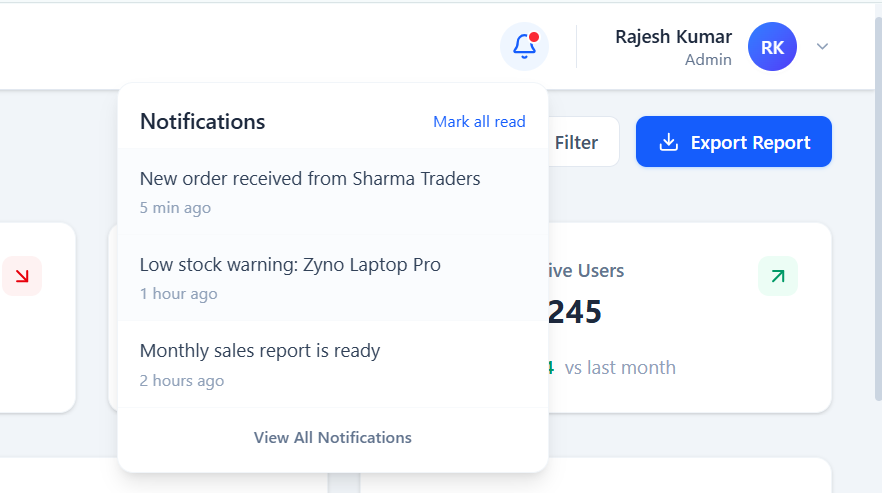 Real-time alerts for important events, approvals, and business activities