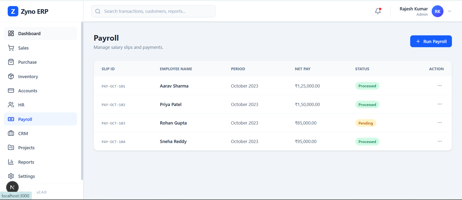 - Full ERP Modules (HR, Payroll, CRM, Finance)