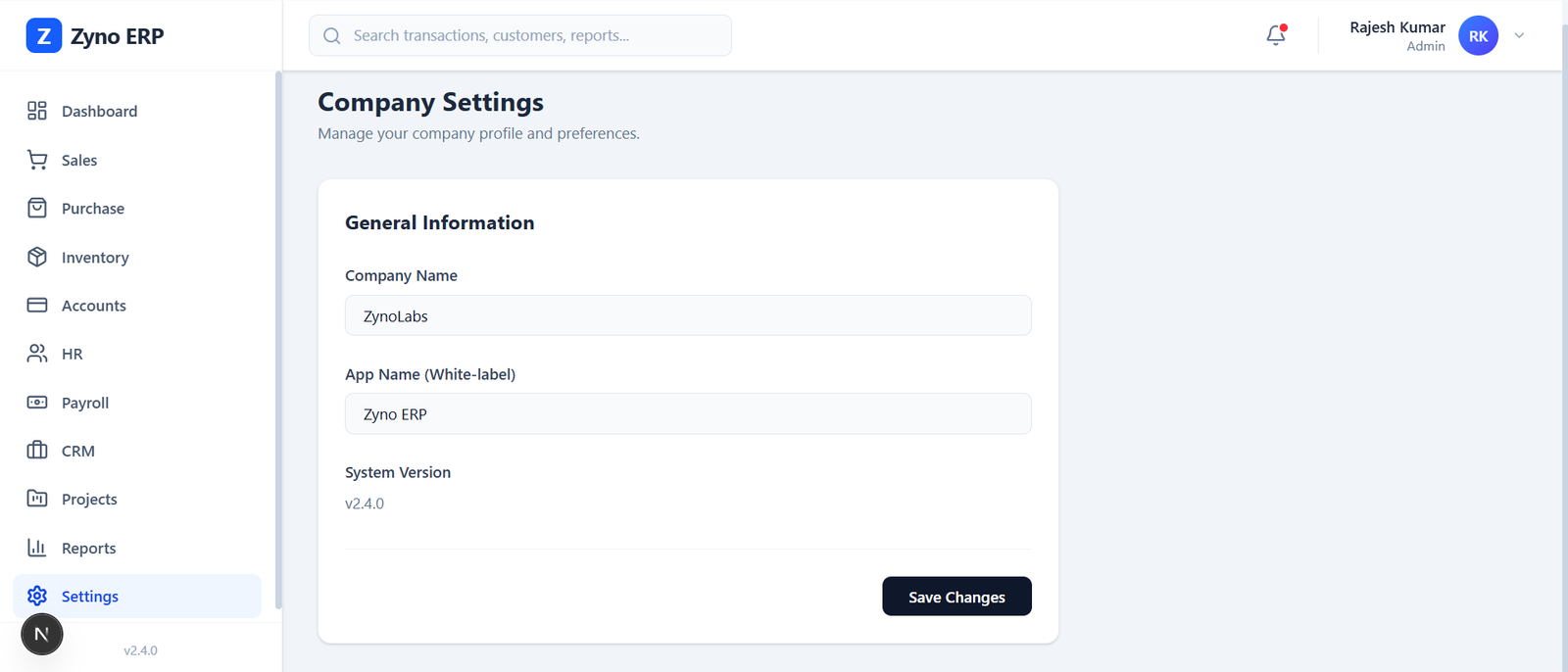 Zyno ERP System
